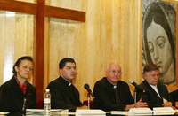 Los dos portavoces del episcopado estuvieron acompañados por los integrantes del Consejo de Bioética de la CEM, el sacerdote Guillermo Gutiérrez y la doctora Pilar Calva Mercado, quienes defendieron que los conocimientos científicos se encaminan a buscar el bien de la persona, se conducen bajo principios éticos pero, como dijo el obispo Chavolla, "la lucha entre el bien y el mal siempre ha existido y continuará".