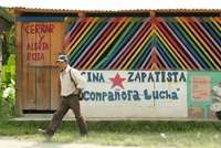 Un hombre camina frente a la cocina a la entrada del municipio aut�o Mois�Gandhi, en Chiapas, el pasado 22 de junio FOTO Jos�arlo Gonz�z