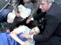 Dos v�imas del atentado son auxiliadas por civiles londinenses cerca de Tavistock Square FOTO Reuters