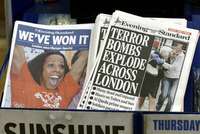 La prensa de la capital brit�ca public�s contrastes entre el j� y la tragedia, ocurridos en menos de 24 horas FOTO Ap