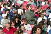 Asistentes al acto de entrega de mastograf�, en la explanada de la delegaci�uauht�c FOTO Guillermo Sologuren