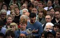 Frente a la estaci�e King\'s Cross, Londres, una de las afectadas por los atentados, decenas de brit�cos oraron y guardaron un minuto de silencio en memoria de las v�imas FOTO Reuters