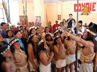 Ind�nas huaorani se manifiestan en la capital ecuatoriana en contra de la presencia de la empresa brasile�etrobras en su territorio FOTO Efe
