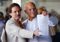 Emilio Men�ez y Carlos Batur�muestran su acta de matrimonio FOTO Francisco Olvera
