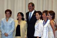 Durante una ceremonia en el Museo de Antropología para difundir el Informe sobre Desarrollo Social y Humano México-2004, elaborado por las Naciones Unidas (PNUD), ubicó también a una "quintilla de ases'', cinco mujeres maravillosas -dijo- que encabezan el gran esfuerzo nacional para el desarrollo humano.