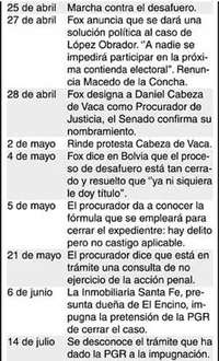 ¿COMO ESTA ESO que AMLO dejará la jefatura de Gobierno del Distrito Federal el próximo día 29, sin que se haya cumplido todavía la promesa de don Vicente de cerrar el expediente judicial en su contra? Pronto serán tres meses desde la fecha en que hizo el compromiso público de que ''a nadie se impedirá participar en la próxima contienda electoral'', que el nuevo procurador Cabeza de Vaca revisaría el expediente y que dentro de la ley se daría una solución política. ¿No les parece extraño que casi tres meses después las cosas sigan prácticamene igual? ¿Recuerdan algunas fechas del largo proceso contra López Obrador?