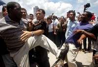 Albañiles que trabajan en obras en el hospital se agruparon para reprimir el incidente con tubos y palos. Uno de los testigos dijo a la prensa que hubo al menos tres heridos en la cabeza.
