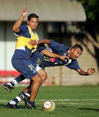 Amoroso (derecha) y Flavio, del Sao Paulo, durante el entrenamiento FOTO Ap