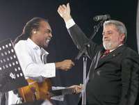 Lula, de visita oficial en Par� saluda al p�o asistente a un concierto en la Plaza de la Bastilla. Lo acompa�l ministro brasile�e Cultura, el legendario m� Gilberto Gil FOTO Ap
