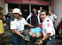 Elementos de la Cruz Roja sacan de la estaci�alto del Agua del Metro a una mujer que se desmay�causa de la aglomeraci�e pasajeros por la falla el�rica en Balderas FOTO Jos�arlo Gonz�z