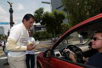 El senador perredista Jes�tega reparti�er propaganda en Paseo de la Reforma, en favor de su precandidatura a jefe de Gobierno del DF FOTO Jos�arlo Gonz�z