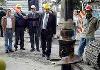 El jefe de Gobierno del DF, Andr�Manuel L� Obrador, dio el banderazo de inicio de los trabajos del nuevo distribuidor vial, en compa�del delegado de Iztapalapa, V�or Hugo C�go, y del secretario de Obras y Servicios, C�r Buenrostro FOTO Notimex/ Francisco G�