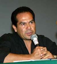El m�ger Mauro Ayala, durante la conferencia de prensa que ofreci�ra ofrecer pruebas FOTO Humberto Gonz�z