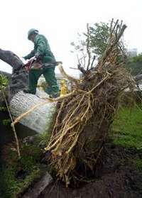 Un trabajador hace le�e un �ol cerca de la frontera Matamoros-Brownsville, Texas, tras el paso del hurac�Emily por Tamaulipas, la semana pasada FOTO Ap