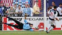 Brad Davis, de Estados Unidos, anota al paname�aime Penedo el tercer tanto para su pa�FOTO Reuters