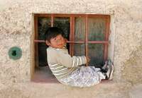 Un ni�oliviano juega en la ventana de su casa, en el poblado de Charazani, 320 kil�os al norte de La Paz FOTO Reuters