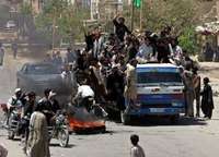 Afganos exigen la salida de las fuerzas estadunidenses de su pa� afuera de la base militar Bagram, al norte de Kabul FOTO Reuters