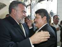 Alejandro Encinas es felicitado por el diputado Francisco Chiguil, luego del nombramiento FOTO Francisco Olvera