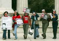 Integrantes de la Red por los Derechos Sexuales y Reproductivos en el Hemiciclo a Ju�z FOTO guillermo sologuren
