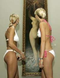 Dos visitantes optaron por el bikini para participar en la exposici�ict�a convocada por el museo Leopold de Viena FOTO Ap