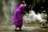 Una campesina de India usa desinfectantes como prevenci�n una �a afectada por las inundaciones que han azotado a esa naci�si�ca FOTO Reuters