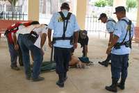 Elementos de la Cruz Roja y de la Polic�Municipal revisaron el cad�r de Apolinar Ju�z, supuesto militante zapatista, quien muri� el enfrentamiento entre labriegos FOTO Victor Camacho