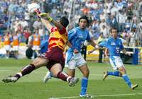 Espectacular lance del portero del Morelia, Mois�Mu� ante Francisco Kik�Fonseca y Gerado Torrado FOTO Francisco Olvera