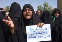 "�� est�l apoyo del gobierno?" se lee en la pancarta de una de las esposas de polic� en Najaf, que ayer se manifestaron porque sus c�ges no han recibido pago en casi un a�OTO Ap
