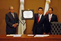 Enrique Pe�ieto recibe de Jos��Casta�, presidente del Consejo General del Instituto Electoral del Estado de M�co, la constancia de gobernador electo de la entidad FOTO Esteban Fabian/ Agencia Mvt
