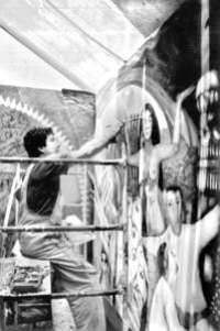 Gustavo Ch�z Pav�urante la creaci�e su mural El derecho a la educaci�emplazado en la ciudad de Toluca, estado de M�co, e inaugurado en junio de 2004 FOTO Cortes�del Artista
