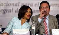 Mar�de los Angeles Fromow, titular de la Fepade, y el subprocurador de Asuntos Internacionales de la PGR, Javier Laynez Potiset, durante la firma de un convenio con el DIF FOTO Mar�Luisa Severiano