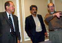 Antonio Gershenson, Daniel Trujillo y Angel Guerra durante su participaci�n el foro sobre el tema el�rico, organizado por La Jornada y Casa Lamm FOTO Marco Pel�