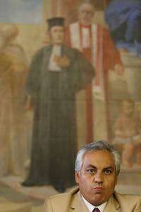 Cipriano Guti�ez V�uez, diputado del PRD y presidente de la mesa directiva del Congreso mexiquense, expone a periodistas su papel en la calificaci�e la cuenta p�a 2004 de la administracion de Arturo Montiel FOTO Agencia MVT
