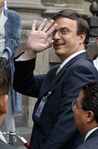 Marcelo Ebrard Casaubon, secretario de Desarrollo Social, a su llegada al recinto de la ALDF, en Donceles y Allende, a la toma de protesta de Alejandro Encinas como jefe de Gobierno del Distrito Federal. Ah�ue cuestionado por los reporteros por el asunto del video sobre un acto proselitista convocado por la delegaci�Coyoac�FOTO Jes�llaseca