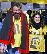 Ra�stells, dirigente del Movimiento Independiente de Jubilados y Desocupados, al lado de su esposa, Nina Peloso, en imagen captada del 11 de agosto de 2004 en Buenos Aires FOTO Afp