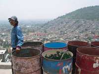Los asentamientos irregulares conllevan la falta de servicios urbanos. En la imagen, habitantes en el cerro de Santa Isabel Tola, en la Gustavo A. Madero, llenan dos veces por semana sus tambos de agua FOTO Fabrizio Le�
