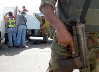 Elementos de la AFI custodian la zona donde asesinaron al regidor Leopoldo Ramos, en Nuevo Laredo. Se anunci�e el lunes ser�eabierto el consulado de EU en esta ciudad FOTO Ap