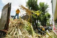 Integrantes de la Uni�e Productores de Ca�e Az�marcharon del Monumento a la Revoluci� la Sagarpa, donde arrojaron bagazo FOTO Mar�Mel�rez Parada