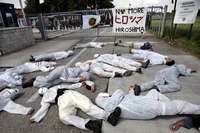"¡Basta de conmemoraciones hipócritas mientras Japón establece alianzas con los estadunidenses para hacer la guerra!", gritaban los pacifistas, en alusión al tratado de seguridad estadunidense-japonés y el despliegue militar del país en Irak.