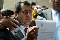 El diputado del PAN Obdulio Avila mostr� copia de la denuncia que interpuso por presunto uso de recursos p�os con fines proselitistas FOTO Luis Humberto Gonz�z