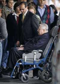 Por su parte y desmintiendo una vez más los rumores sobre su supuesto "grave estado de salud", también llegó al hospital Pinochet, fuertemente custodiado.