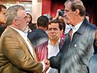 El jefe de Gobierno capitalino, Alejandro Encinas; el delegado en Iztapalapa, V�or Hugo C�go, y el presidente Vicente Fox, al t�ino del acto en el que se puso en marcha la estrategia federal FOTO Jos�arlo Gonz�z