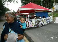 Bloqueo de habitantes de Santa Cruz Acalpixca, quienes se�n que se pretende desviar el agua de sus pozos hacia otras poblaciones de la delegaci�ochimilco FOTO Carlos Cisneros