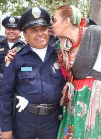 Un polic�veterano es apapachado durante un convivio organizado por la Secretar�de Seguridad P�a del DF FOTO Mar�Mel�rez Parada