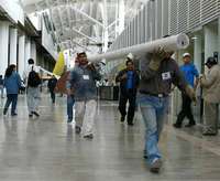 El resto, entre 60 y 70 operarios, fueron liquidados ayer por la tarde, y también sólo les pagaron parte del adeudo. Hay casos de soldadores, operadores de maquinaria pesada, tablarroqueros y colocadores de las láminas de la nave cóncava del último tramo del área nacional (donde se trabaja a más de 30 metros de altura sin cinturón de seguridad), que esperaban recibir entre 15 y 20 mil pesos por persona que se les adeudaban, sólo recibieron entre 5 y 6 mil pesos, según dijeron.