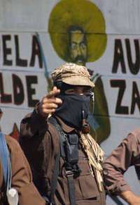 El subcomandante, durante su mensaje de este domingo en el que ret� PRD y a Andr�Manuel L� Obrador a debatir ideas y propuestas FOTO V�or Camacho