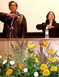 Cuauht�c C�enas y Amalia Garc� durante la constituci�el organismo pol�co Alianza Popular, en Zacatecas FOTO Alfredo Valad�