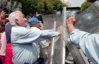 Los ex braceros se enfrentaron con polic� y destruyeron algunos bienes de la Secretar�de Gobernaci�Deber�enfrentar cargos por da�en propiedad privada FOTO Notimex