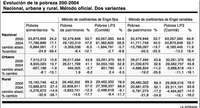 PERO AL DAR a conocer los resultados de la medición de la pobreza para 2004, el Comité decidió mantener los CE constantes y presentó resultados nuevos tanto para 2004 como para 2002, revisando a la baja los resultados que había obtenido la Sedeso. La explicación de este cambio brilla por su ausencia en los documentos divulgados por el Comité, excepto la alusión a "para permitir comparaciones en el tiempo", lo que significaría que su metodología original no lo permitía. También invalidaría la serie de evolución de la pobreza 1992-2000 citada. El Comité decidió mantener los CE de 2000 y con ellos hacer el cálculo de las líneas de pobreza de capacidades y de patrimonio para 2002 y 2004. ¿Por qué este cambio si, como hemos mostrado, se contaba ya con una serie usando CE variables desde 1992 hasta 2002? La respuesta está en el cuadro que se anexa. Si se hubiera usado el coeficiente variable, la pobreza en 2004 se habría caído estrepitosamente. Un milagrito era pasable, pensaron quizás, pero un milagrote hubiese sido insostenible. Veamos los resultados (cuadro anexo).
