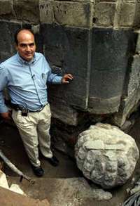 El arque�o Leonardo L� muestra La piedra de la librer�Porr�ue representa una biznaga, y que fue hallada durante de la sexta temporada de campo del Proyecto Templo Mayor FOTO Francisco Olvera